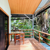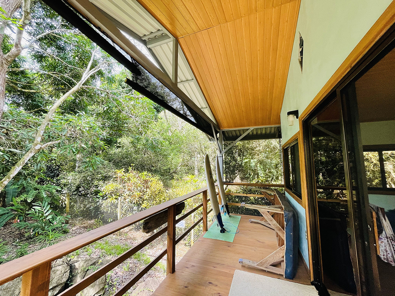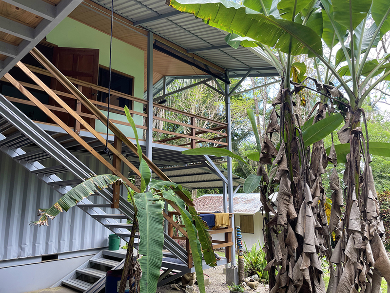 This hidden gem is tucked away off the main road just across from the beach. This is a new build in 2019. It feels fresh and alive. Casa Evergreen is made of wood and steel construction. In fact, it\'s a converted container home with its very own shaping bay/workshop. It\'s a surfer\'s dream. Low maintenance, close to surf and food. The quaint country road from the sea to the jungle is a scenic stroll in itself.