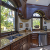 Off of the dining area is a completely modern kitchen with the latest appliances. A granite countertop island with built-in stove top is situated under a soaring 24-foot ceiling with large bright windows filling the kitchen with natural sunlight.
