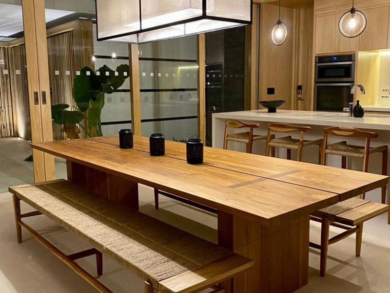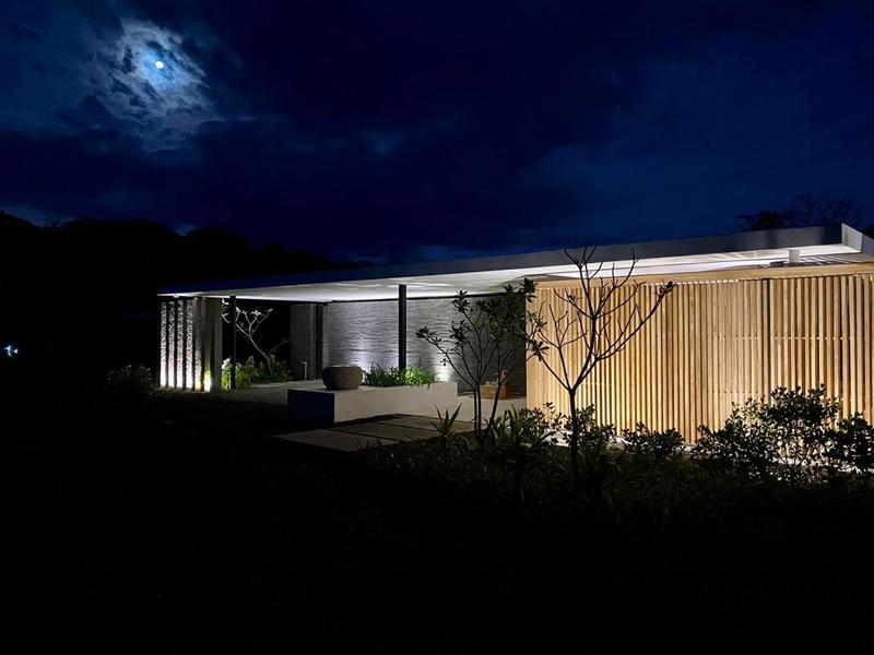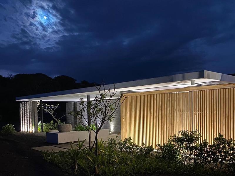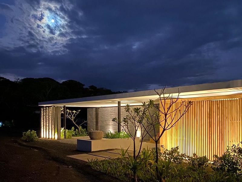 Intelligently combining modern lines with local materials including Molina and Teak wood from Costa Rica with Feature Volcanic stone work.