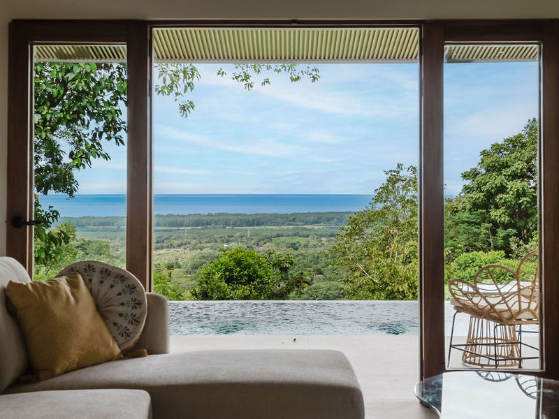 Welcome to Casa Tucán; nestled in a private gated community in the lush mountains of Portasol, this breathtaking modern contemporary home offers a perfect blend of luxury and nature. This ocean view villa features panoramic vistas of the ocean and has its own private nature trail to a spring fed river with waterfalls bordering this property and minutes to the beach! This property could easily be expanded into a family compound!