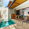 Townhomes #2 & #3: Each unit has 2 bedrooms, 2.5 bathrooms, a private dipping pool, and a private rooftop terrace. The first floor features an open layout with a kitchen, dining, living room, and a half bath. The second floor has two bedrooms and two bathrooms.