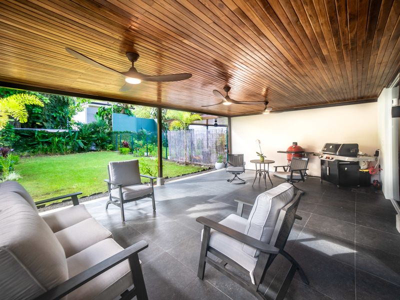 Step outside to a beautifully designed backyard and patio area. The outdoor space is pre-plumbed for a pool, making it easy to create your personal oasis. Imported Bali furniture adds a touch of elegance, while a smart irrigation system, controlled from your phone, keeps the landscaping pristine. A smoker and grill are included, and the custom wood plank ceiling and tinted windows help maintain a cool environment while reducing energy costs.