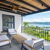 The outdoor living area has been reimagined for relaxation and entertainment. It boasts an outdoor kitchen, a cozy sitting area with a fireplace, and a poolside bath—all centered around a spectacular infinity pool overlooking the ocean and resort.