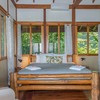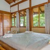 The entry level welcomes you into a newly renovated kitchen and dining area, fully air-conditioned and designed for comfort. Just beyond, the space opens to a deck and pool terrace, the perfect spot to enjoy panoramic views and daily wildlife encounters. Two guest suites extend from this level, including the Canopy Suite with a king bed nestled in the treetops and the lower-level suite with two full beds.