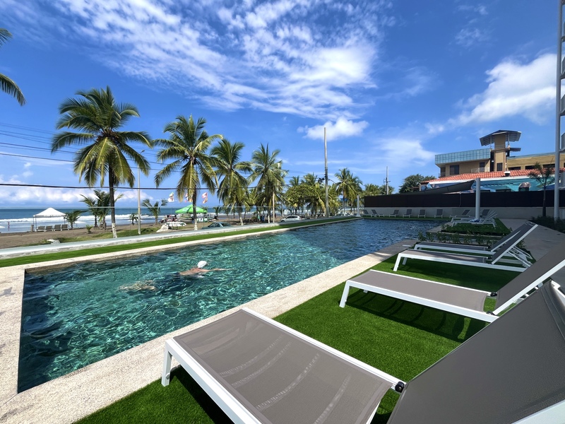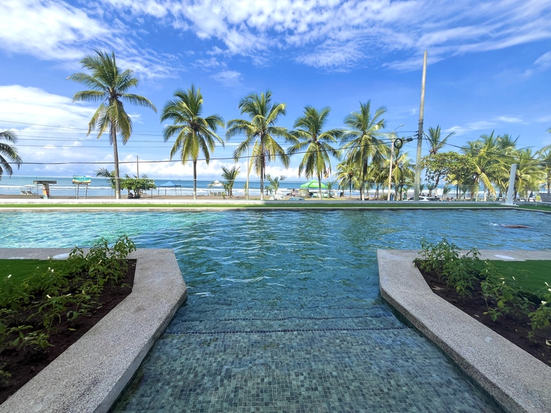 3 Bedroom 3 Bath Direct Oceanfront Condo for Sale in Pacific Point Jaco. This new condo is one of only 12 direct front facing 3 bedoom condos in the entire complex. Turn key fully furnished the condo also includes a parking space and storage unit.