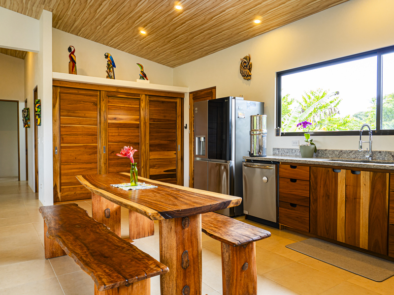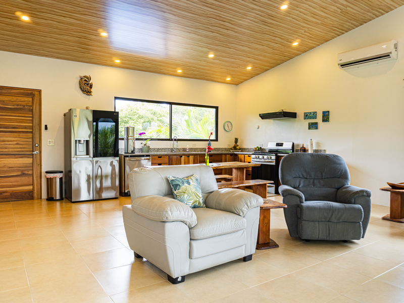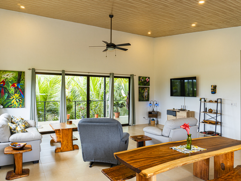 Start your mornings on the covered deck with a cup of coffee, listening to the relaxing sounds of distant howler monkeys, ocean waves, and tropical bird calls. A family of toucans often visits just outside the bedroom window, while beautiful Scarlet Macaws fly overhead daily, often stopping by the almond trees.