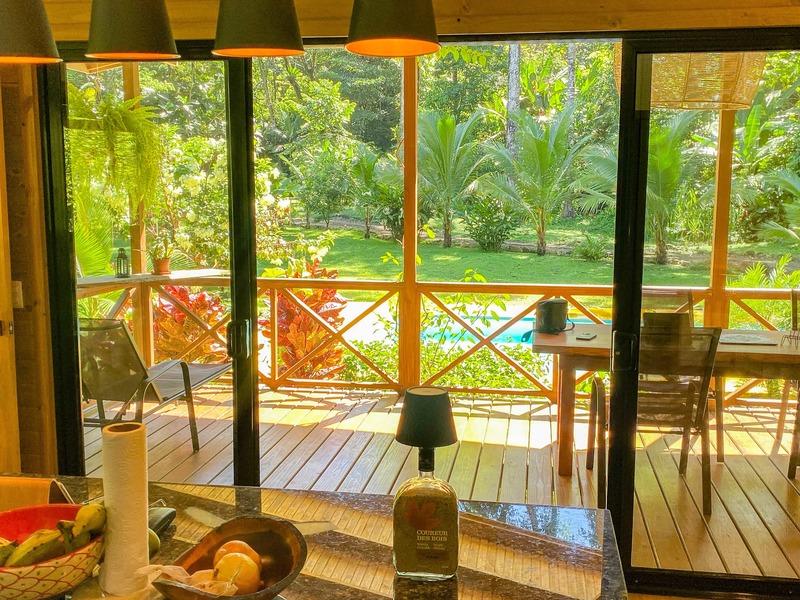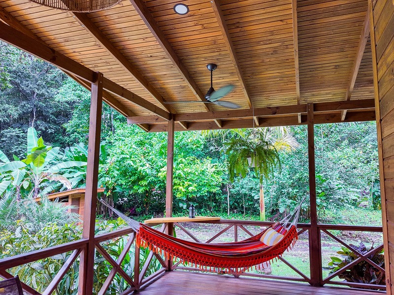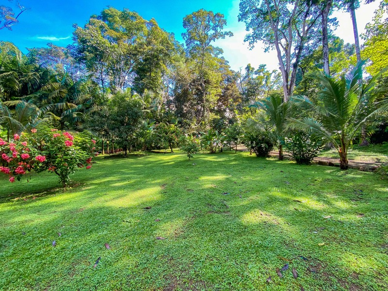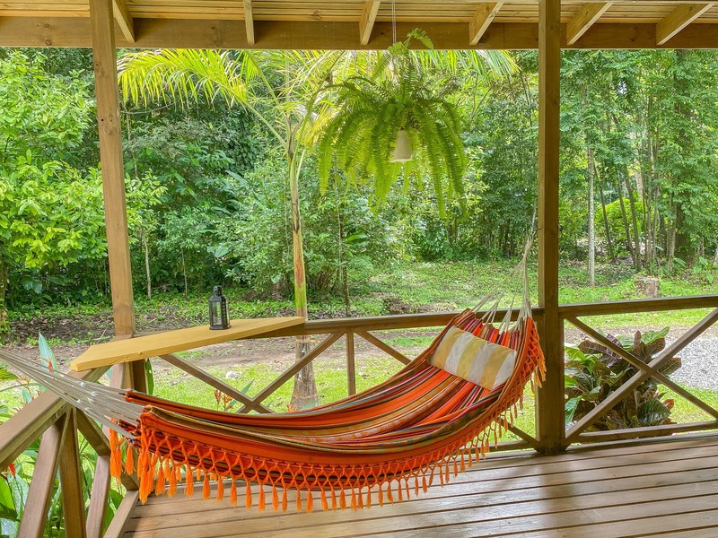 This wonderful home, of a beautiful and warm stone & lumber construction, is designed to take full advantage of the towering jungles that surround the property. Located on Cinco Ventanas road’s quiet, parallel off-shoot, this house is fully separated from the local through traffic and enjoys total peace & serenity. Towering rainforests surround this 0.7-acre property from every direction – a wall of green that creates a magical vibe you will never grow tired of. Full privacy without the isolation – and it is assured, as there will be no construction on the virgin land that touches the house. Beautiful gardens and landscaped lawns surround the home. And to complete this tranquil offer, a crystal-clear mountain river, draped in jungles, winds her way around the border of the property. Her burbling sound will help you drift off to sleep every evening.