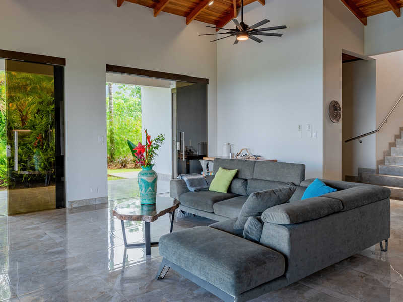 Two of the three lavish bedrooms boast private en-suites, ensuring comfort and privacy for residents and guests alike. The true hallmark of Casa Jaguar? Every room frames the endless blues of the Pacific Ocean, transforming daily life into a serene retreat. Whether savoring morning coffee with sunrise hues, harvesting fresh fruit from your private orchard, or hosting sunset soirées against a golden horizon, this home is a sanctuary where luxury meets nature’s grandeur.