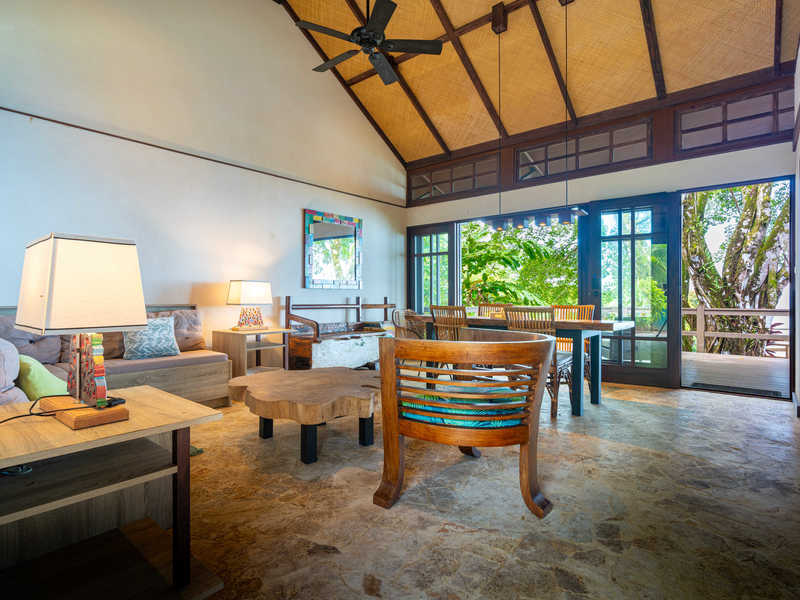 The property features three identical beachfront villas, each fully furnished and designed for seamless indoor-outdoor living.