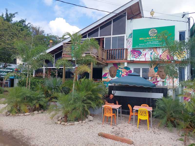 A panoramic viewpoint offers stunning views of the ocean at Cangrejal beach and the surrounding countryside, reinforcing the calm and natural beauty of the setting.