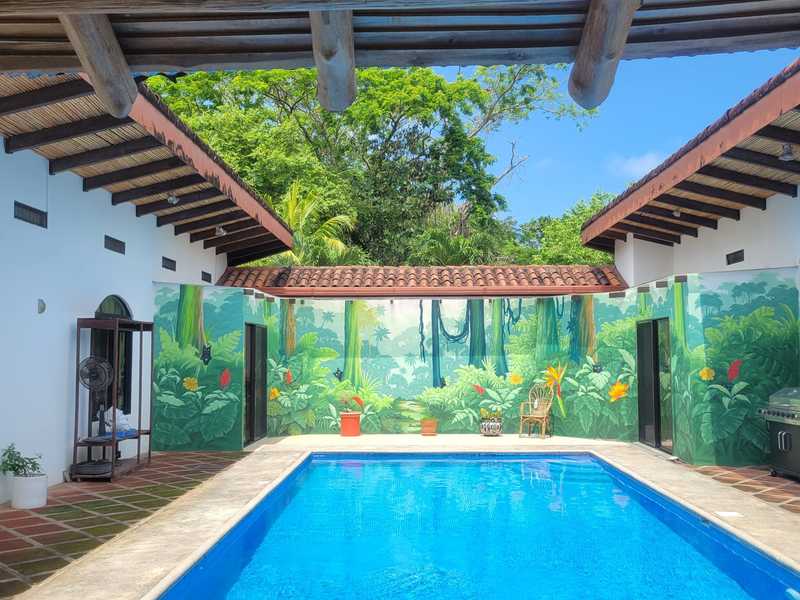 The property is fully fenced, featuring a carport, bonfire space, and fruit-producing mango and coconut trees. Beautiful tropical murals throughout the home add artistic charm and a touch of pura vida personality. With AyA water, community security at $70 a month and no HOA fees, you’ll enjoy freedom, peace, and privacy without sacrificing comfort.