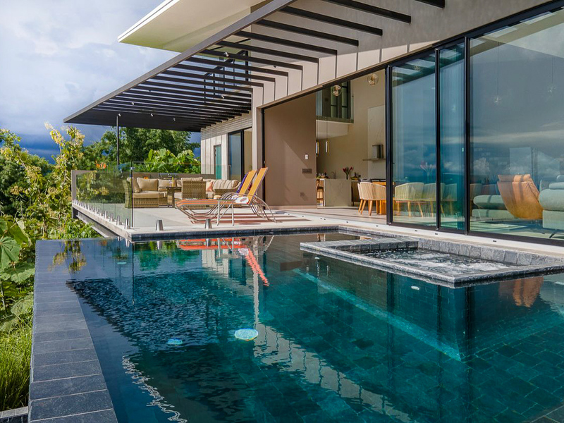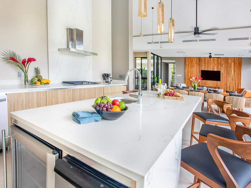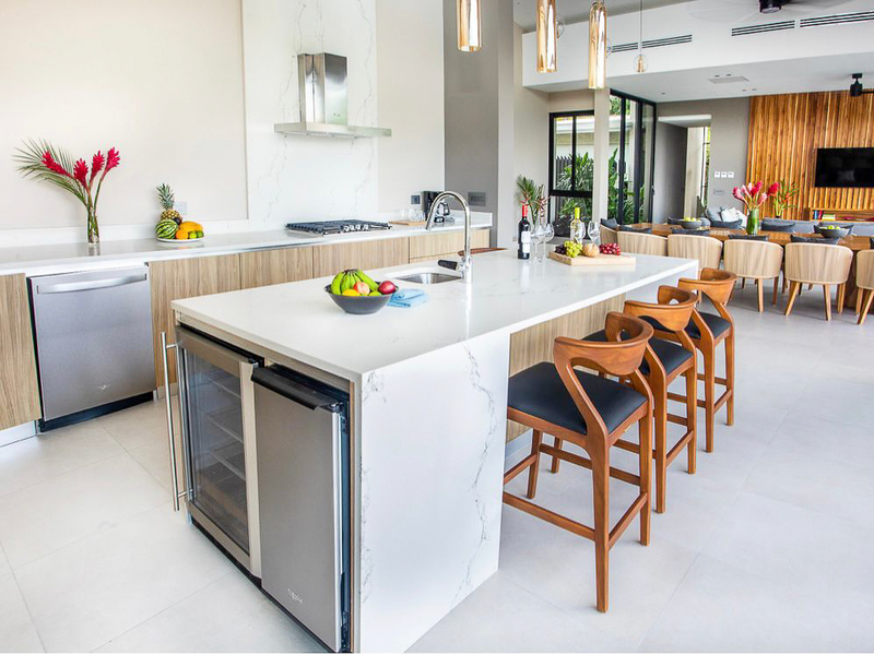 Created through a collaboration between one of the area’s top architects and a respected civil engineer, this residence reflects a unified vision of sophistication and durability. From the moment you step inside, soaring 20-foot ceilings and a panoramic vista stretching from the mountain peaks to the Pacific coastline set the tone—an unmistakable hallmark of luxury living in Costa Rica.