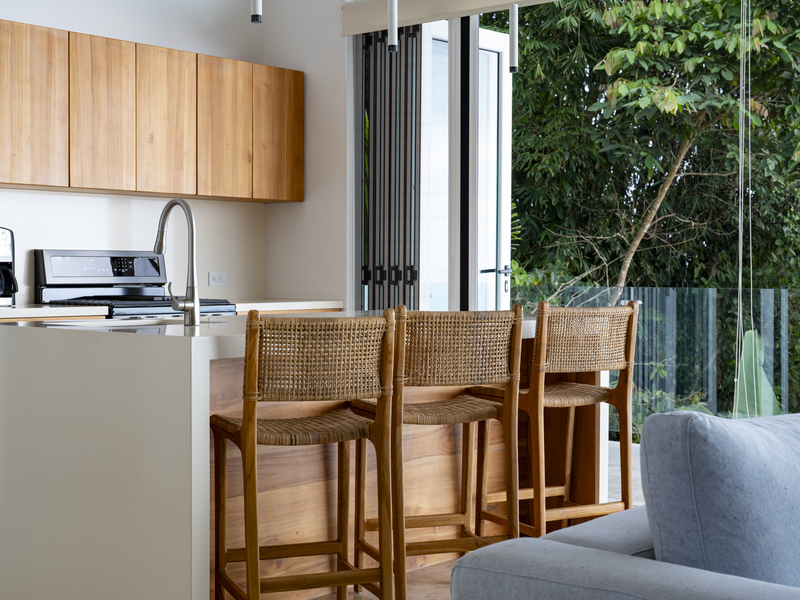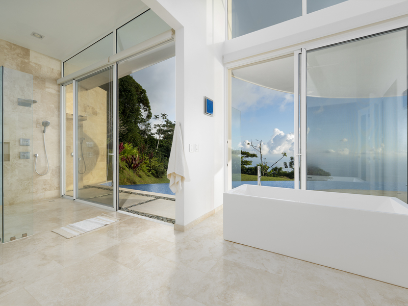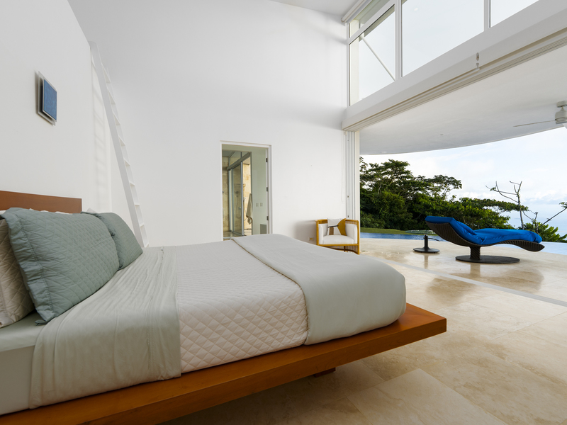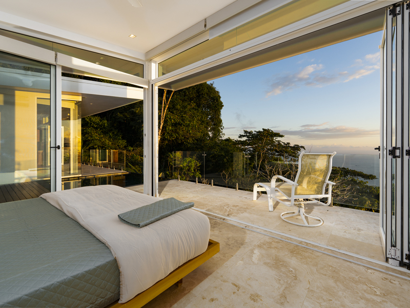 Mornings at Casa Luz are a ritual. From the primary suite, the day begins as the sun rises over the Pacific, illuminating the horizon while the rainforest below comes alive. Whether you are standing beneath the glass-wrapped shower, soaking in the freestanding tub, or enjoying the private loft of the suite, the view is always present—quietly powerful, endlessly inspiring.