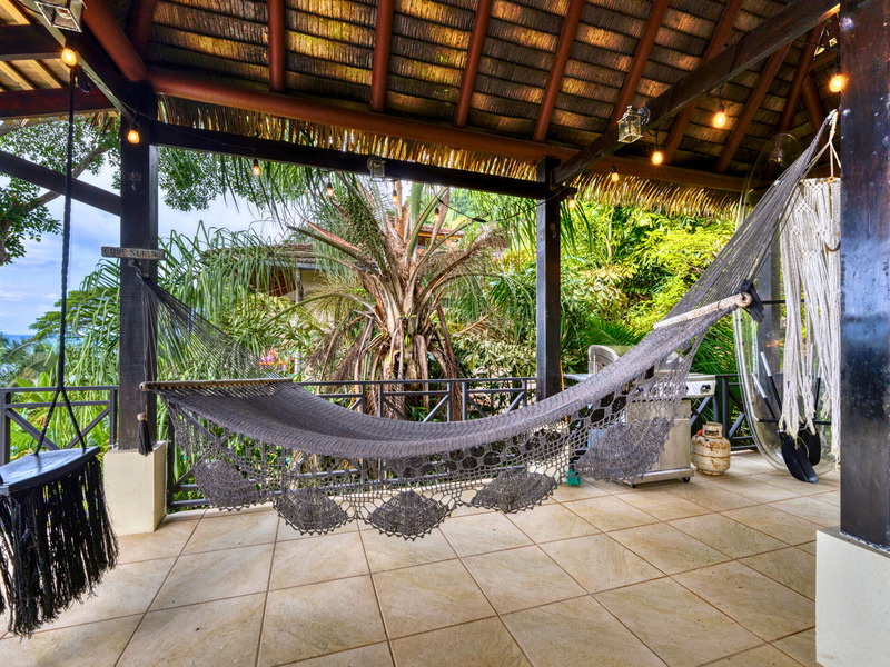 The villa itself is designed for effortless tropical living. An open-concept layout connects the interior spaces to a generous outdoor terrace, where ocean and mountain views form a relaxed, natural backdrop. Coastal breezes move freely through the home, and natural light fills the living areas, creating a space that feels comfortable, airy, and easy to live in year-round.