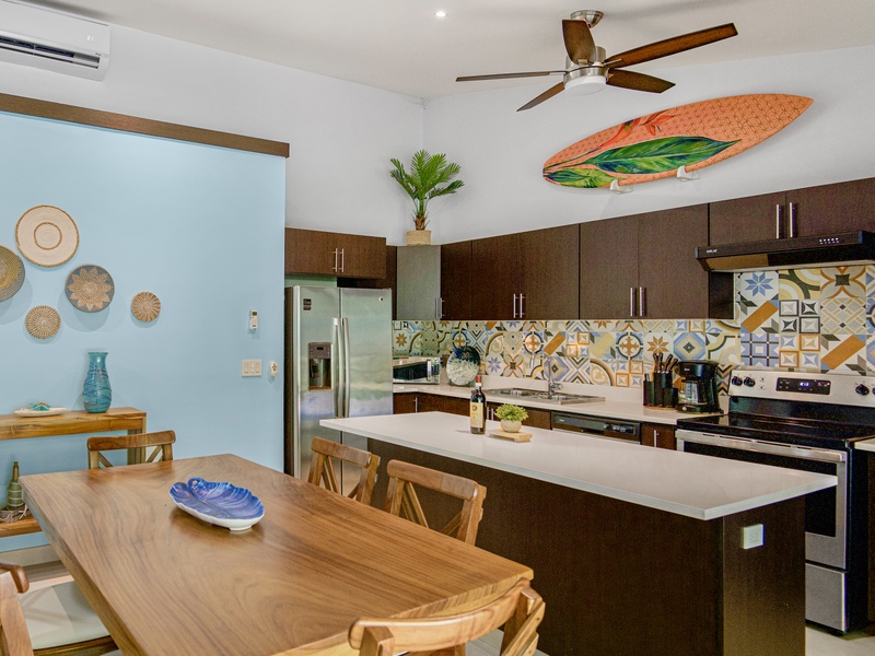 - Modern Kitchen: Upgraded with a chic backsplash, granite countertops, and a custom teak dining table.