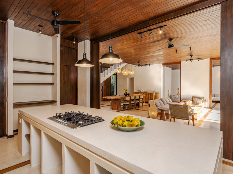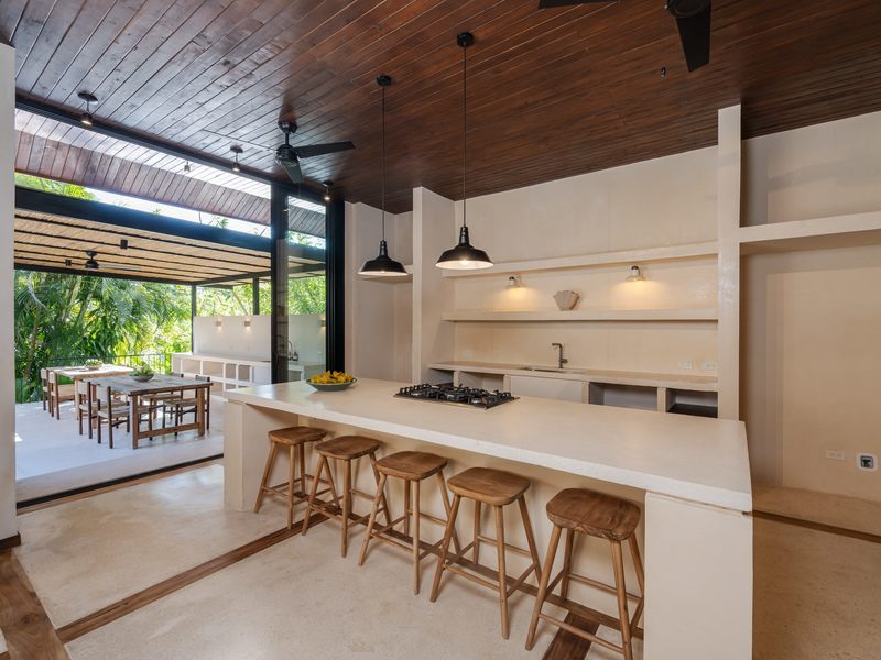 The upper level features an open outdoor kitchen, social areas and a sunset-facing terrace perfect for movie nights under the stars.