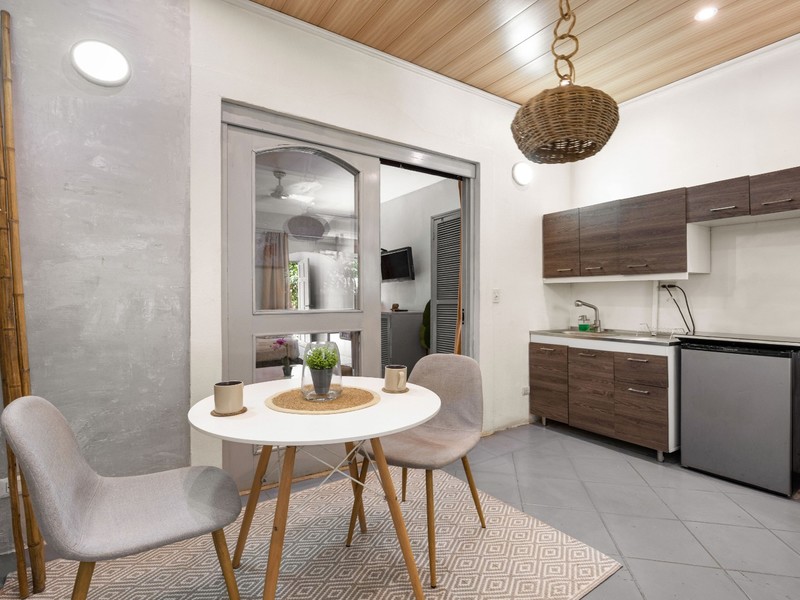 The property offers a versatile layout designed to accommodate a variety of guest needs. It includes two studios with full bathrooms, a family suite, two dormitory-style rooms that can be converted into private suites, a two-bedroom suite, and a two-bedroom apartment with two full bathrooms. There is also a shared half bathroom for common areas.