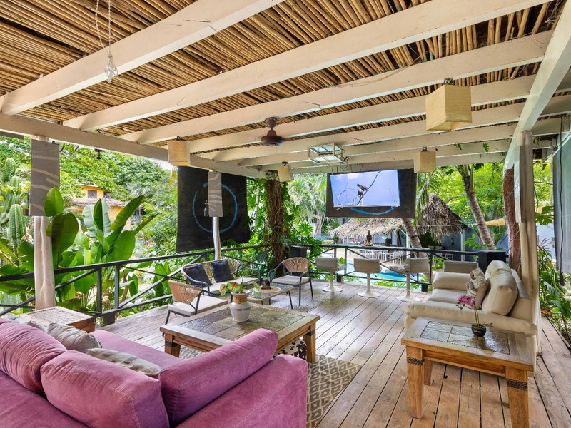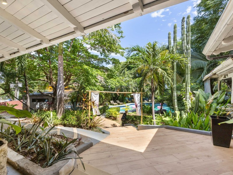 This boutique hotel sits on a spacious 1,500 m² lot and features 9 bedrooms and 8.5 bathrooms. The property includes four fully equipped kitchens, making it ideal for boutique hotel operations, surf retreats, group accommodations, or private events.