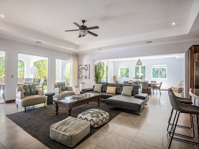 The views are exceptional as the home sits atop one of the highest elevations in the resort with panoramic jungle views. Vaulted bamboo ceilings and floor-to-ceiling windows lend a light and airy feeling to a luxurious, yet unpretentious home, and every attention to detail has been given to accommodate even the most discerning traveler.