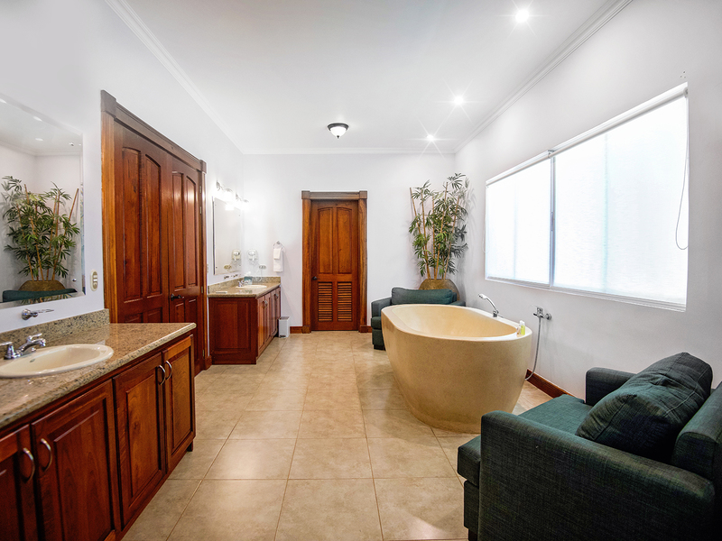 Finally, also located on the main floor, is the very private principle master suite, which boasts a large en-suite bath featuring a stone tub and separate shower with dual shower heads. Casa Pacifica is one of the most sought-after and well-known vacation rental homes in the resort and has some of the highest rental returns of any home in the resort and Costa Rica. For more information on this home and specific rental numbers, please contact us via email or phone.