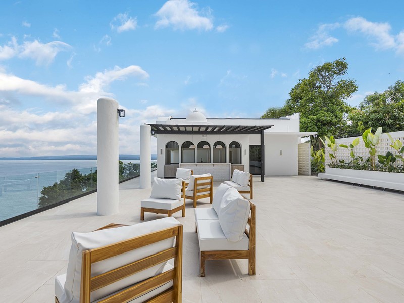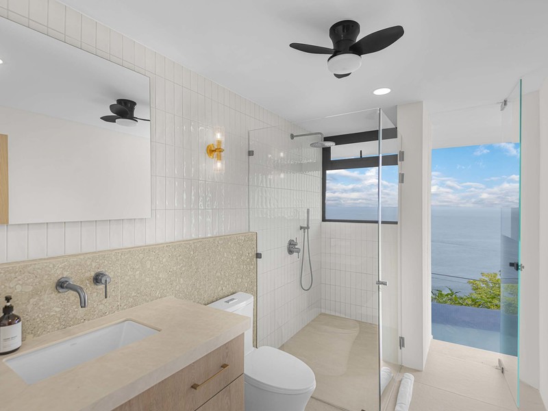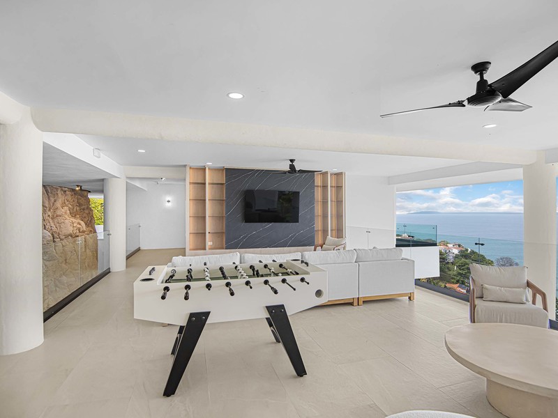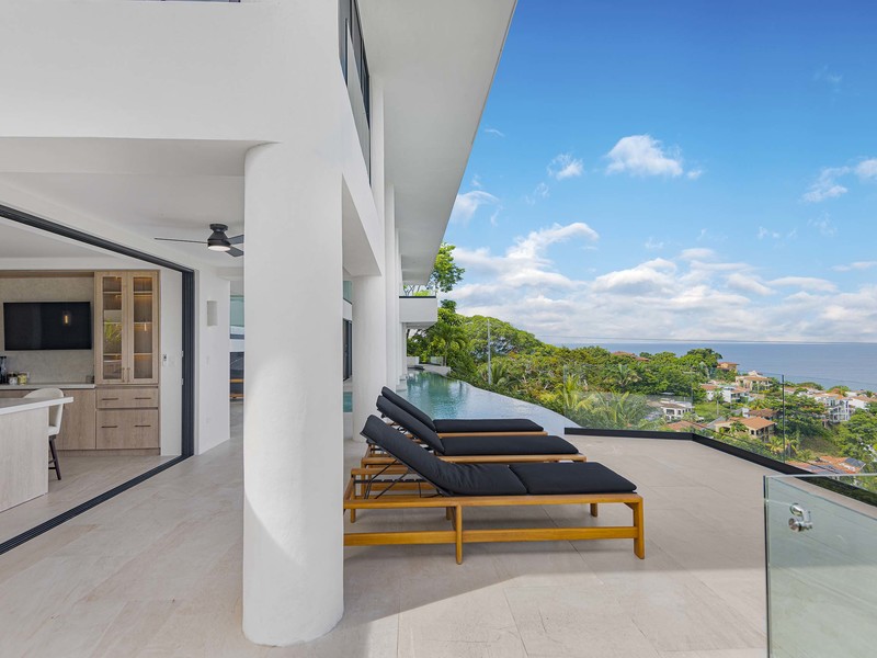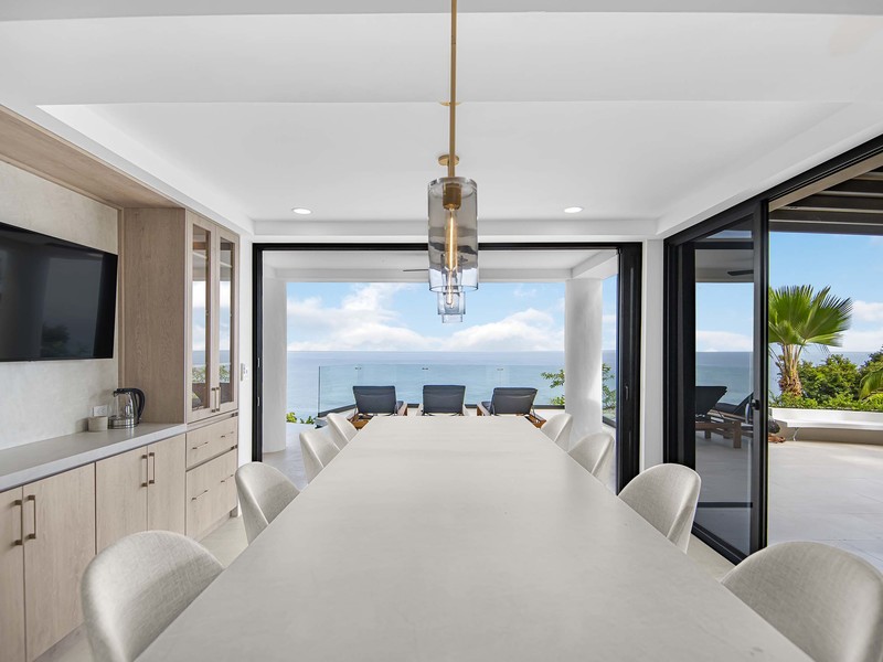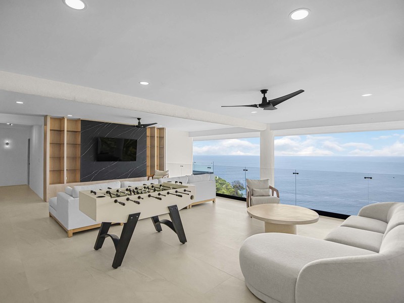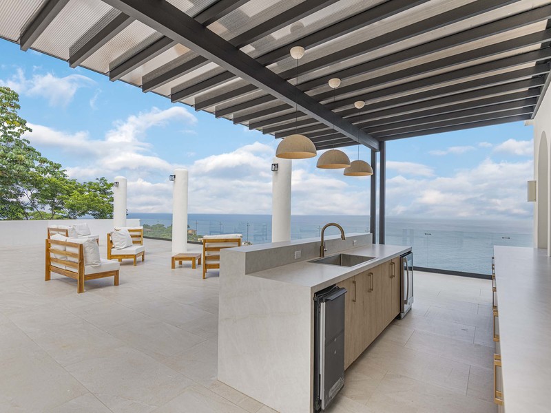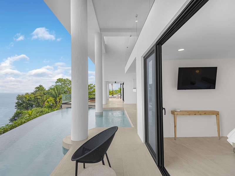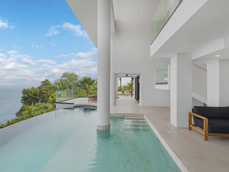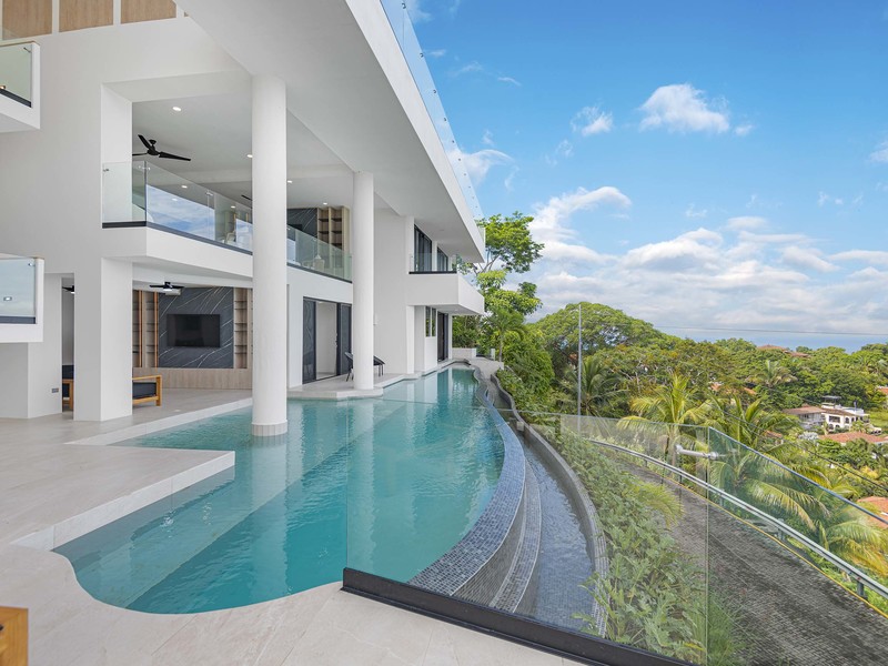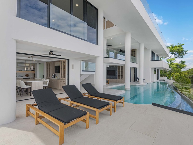 Reimagined from top to bottom, the renovation includes architectural upgrades, modern systems, custom interiors, and redesigned outdoor living areas. Built across two titled ocean-view lots, this nearly 13,000 sq ft residence delivers uninterrupted Pacific Ocean views, a cascading infinity pool, and direct access to the Punta Leona Beach Club.