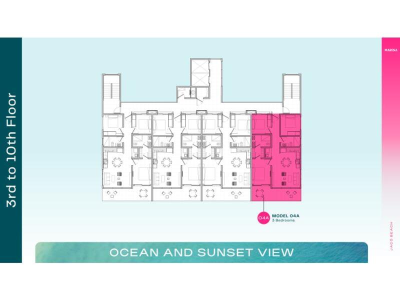 Enjoy prime location right in the heart of Jaco Beach in your new modern oceanfront condo. This small density project of just 42 units features 2 penthouses and 40 3-bedroom units, all front-facing oceanfront. The project is set to begin construction at the end of 2025 and is sold out but this resale on the 9th floor is available for $456,000. Amenities include small gym, commercial area, bbq area and resort style pool. Unobstructed oceanfront 3 bedroom condos in Jaco are hard to find, do not miss out to purchase.