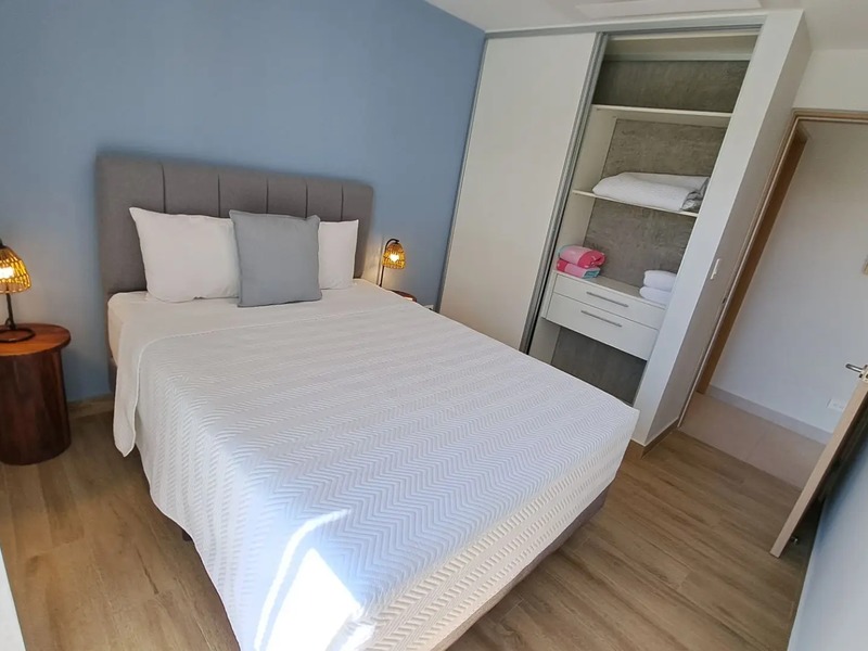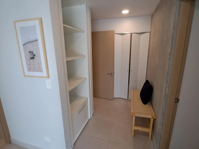The unit is offered unfurnished and includes three independent Wi-Fi–controlled air conditioning units, a water heater, MDF cabinetry throughout, modern kitchen and bathroom fixtures, ceiling fans, and full LED lighting.