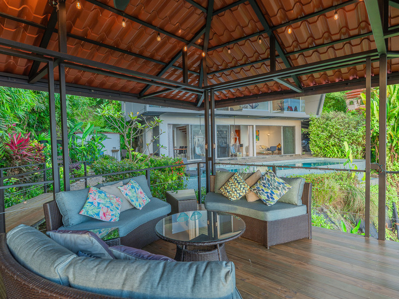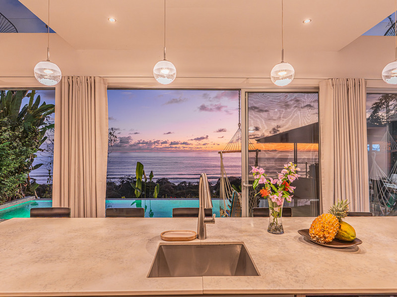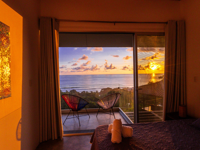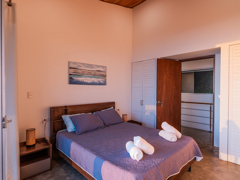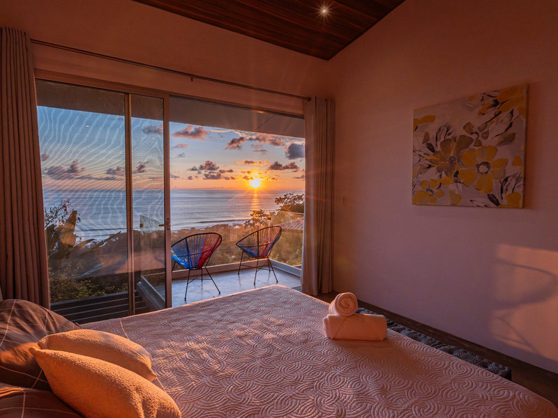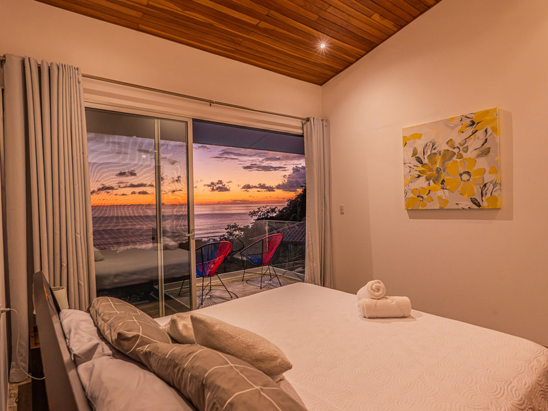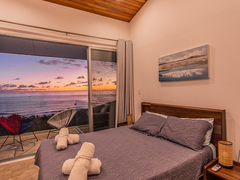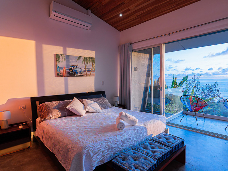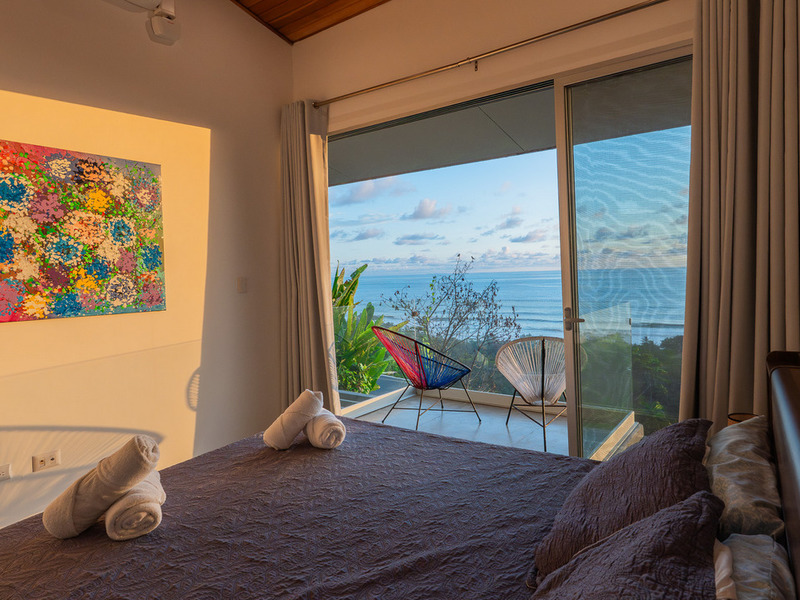 A wooden staircase leads to three beautifully appointed, air-conditioned bedrooms, each with its balcony and stunning ocean views right from the bed.