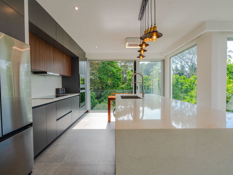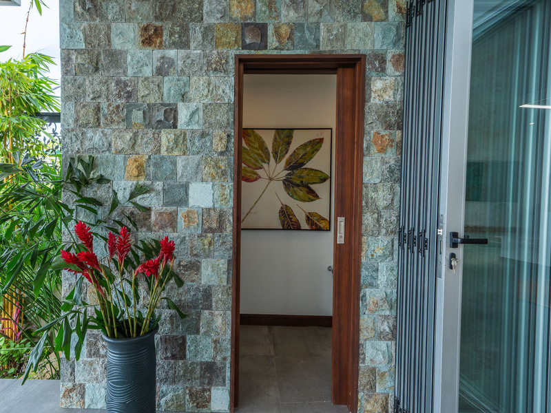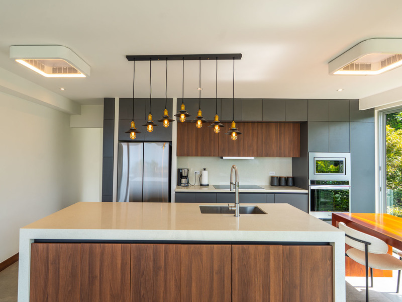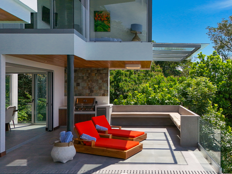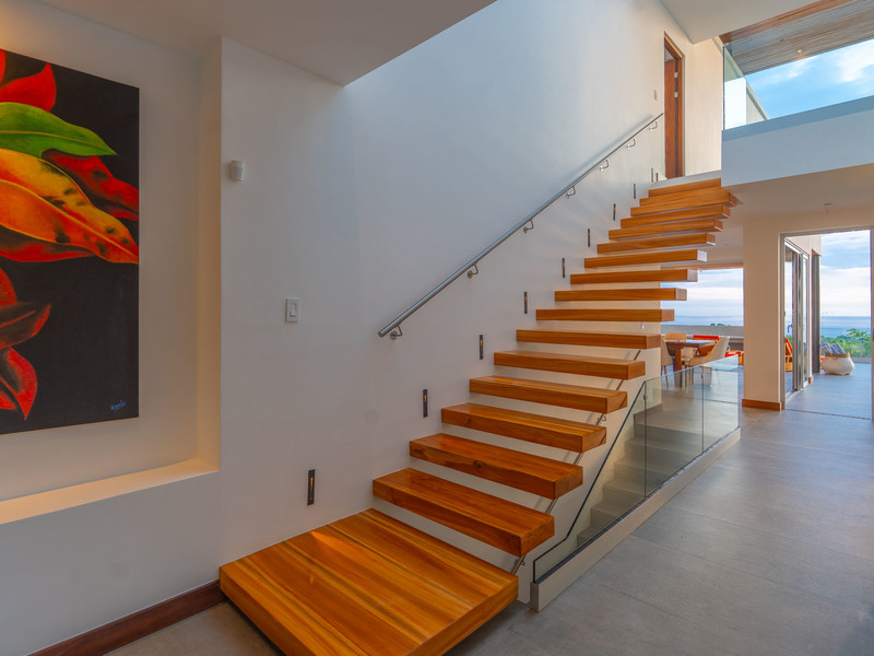The main floor is an entertainer’s dream. Floor-to-ceiling glass walls create a seamless flow between the gourmet kitchen, the living area, and a massive terrace running the length of the home. Crucially, this level offers a rare hillside luxury: effortless accessibility. The covered carport is perfectly level with the front entrance, allowing you to move from your car to the living room without navigating a single step—making luggage and grocery drop-offs a breeze.