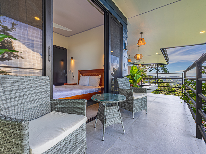 Breathtaking 180° views of the ocean, Whale Tail Beach, and Caño Island.