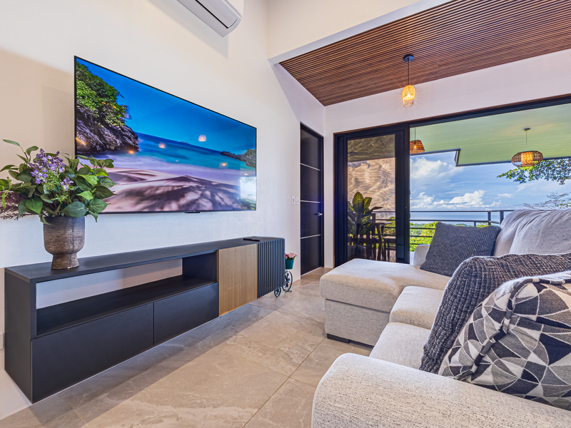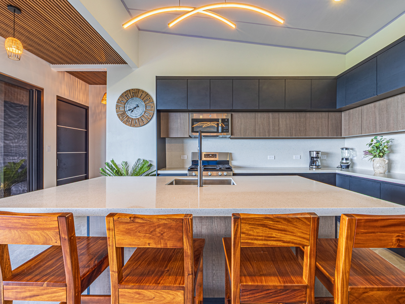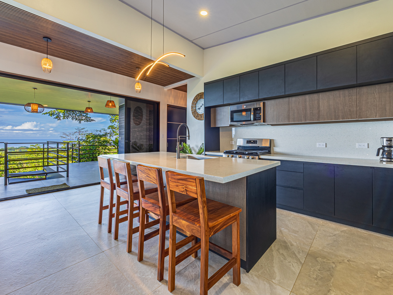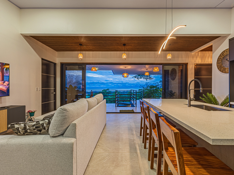 From the moment you walk through the stunning custom teak front door, the scenery takes your breath away: a 180° panoramic view showcasing the iconic Whale’s Tail beach, Caño Island, and the endless shades of the ocean. Every corner of the home is designed to celebrate the natural beauty of the surroundings, filling the spaces with natural light and refreshing tropical breezes.