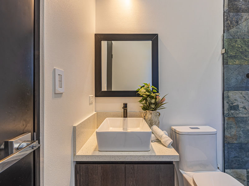 Two guest bedrooms: bright, generous in size, and with ocean views. One guest room includes a private terrace overlooking the Pacific — ideal for hosting family and friends.
