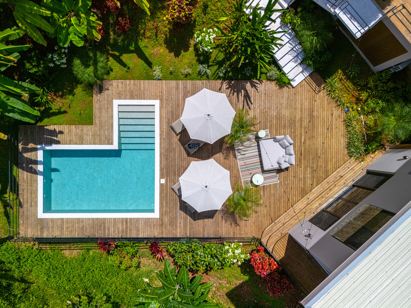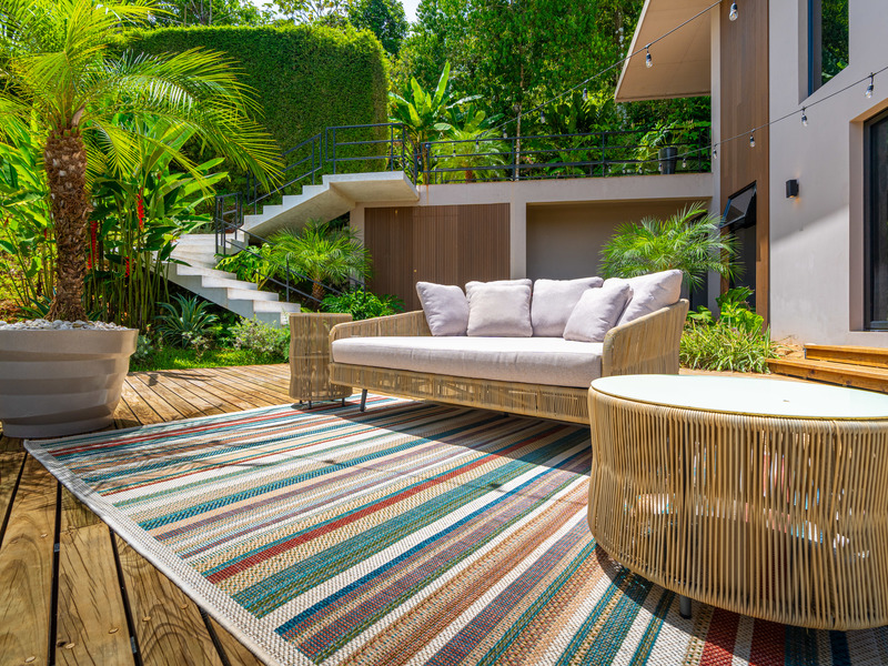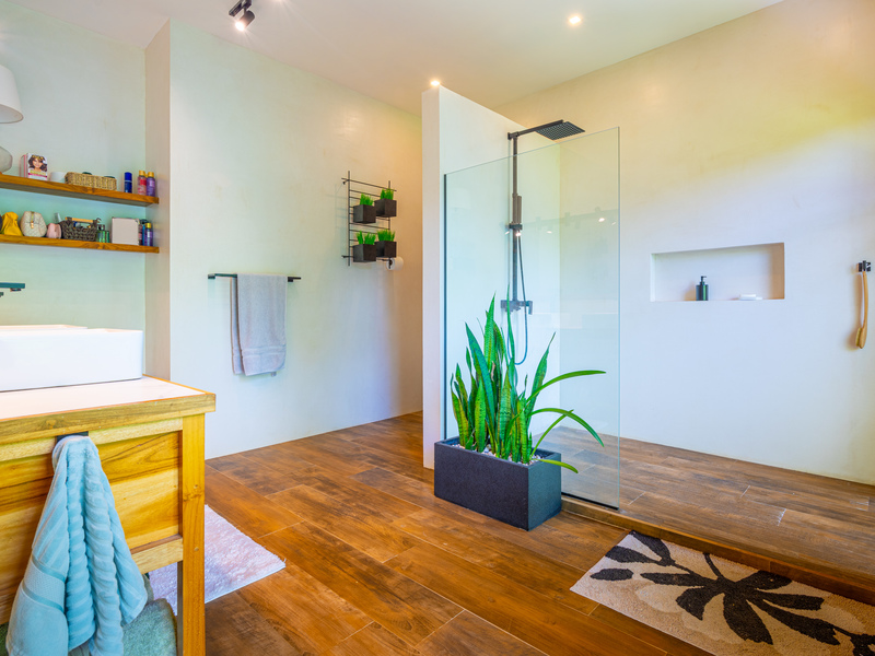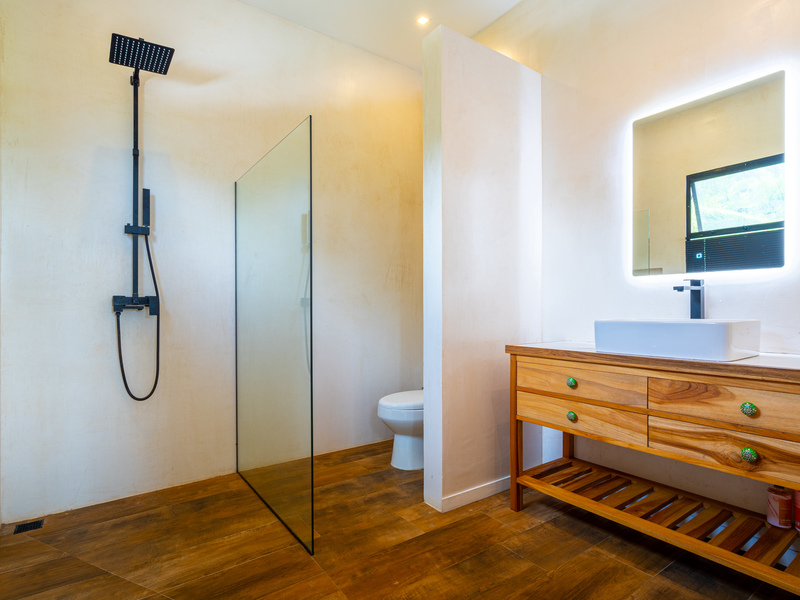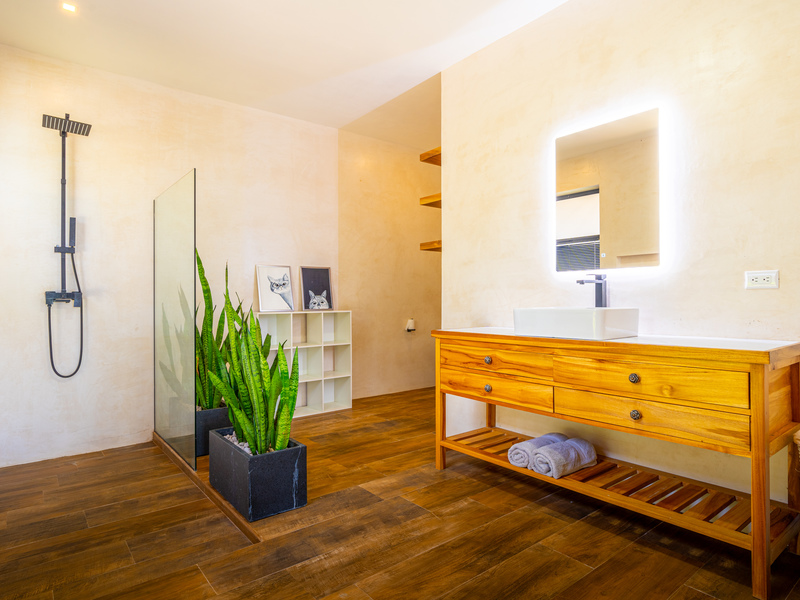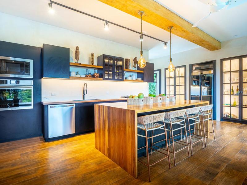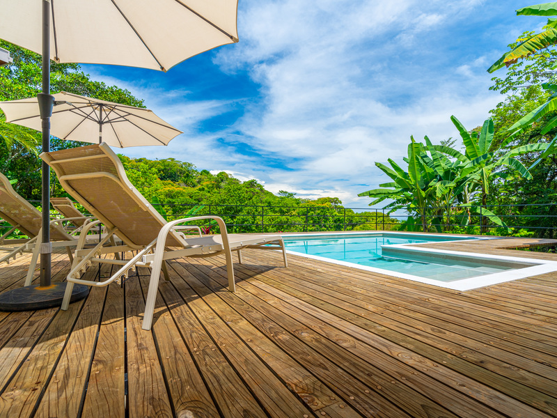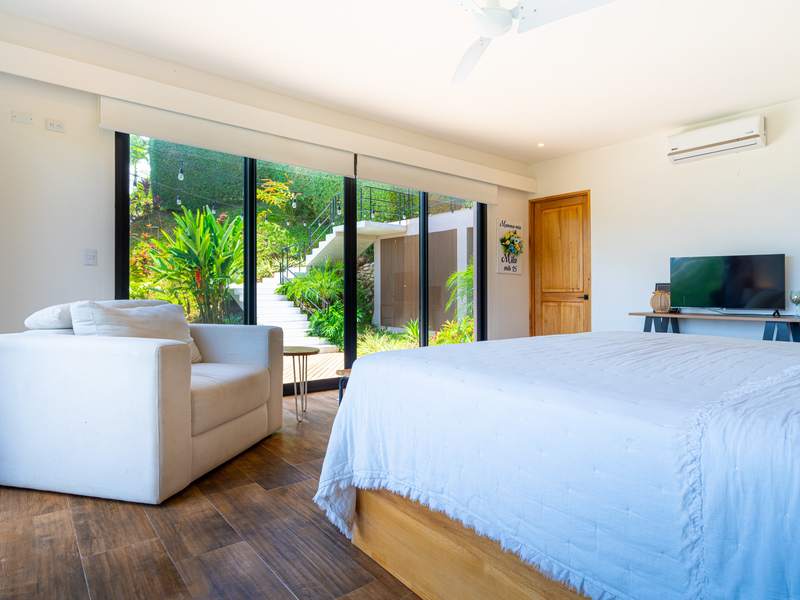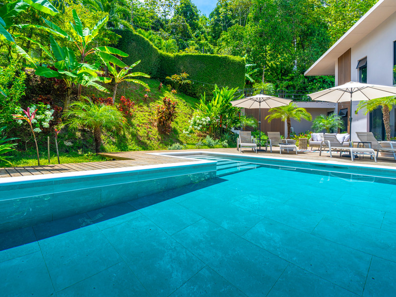 Outside, enjoy indoor-outdoor living at its finest. The tiled pool area on the lower level offers total seclusion, surrounded by tropical greenery with mesmerizing views of the ocean and jungle. It’s a true spa-like retreat—ideal for relaxation or entertaining.