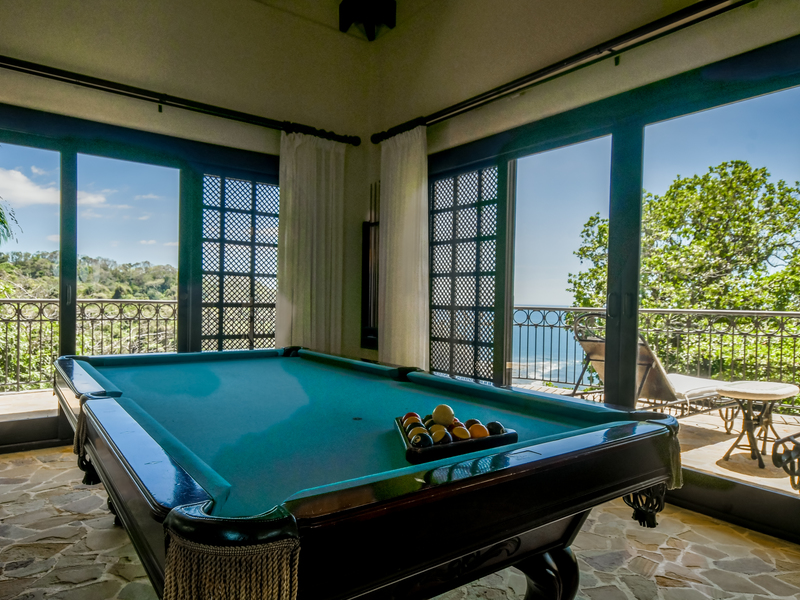 Casa Avalon is a distinguished seven-bedroom sanctuary nestled within the exclusive enclave of Punta Leona on Costa Rica\'s Pacific coast. Perched majestically 100 meters above sea level, the villa commands sweeping panoramic vistas of the ocean and is graced by cooling maritime breezes. Owners and guests can retreat in absolute serenity, knowing that Villa Avalon offers the uncompromising privacy and security of a premier gated community. The interior of Villa Avalon is an oasis of refined comfort, featuring a gourmet, fully equipped kitchen with an intimate breakfast nook, and an expansive living salon designed for leisure—complete with billiards, curated board games, and a sophisticated enclosed bar. The architecture seamlessly transitions to a sweeping terrace, where outdoor seating and indoor bar access invite you into airy, off-white spaces characterized by soaring ceilings and furnishings that are as chic as they are inviting.