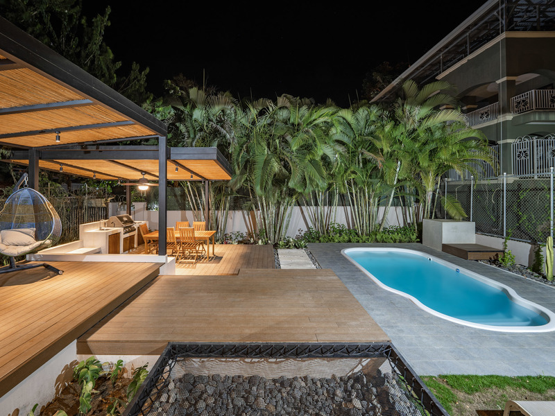 • Tropical landscaping providing privacy