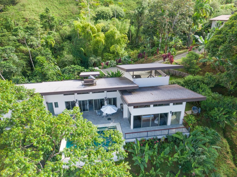 The home is located on 3.8 acres, in the prestigious “Hills of Portalon” community, 8 minutes off the Costanera highway, situated between Quepos (20 min), Dominical (10 min) and Uvita (25 min).