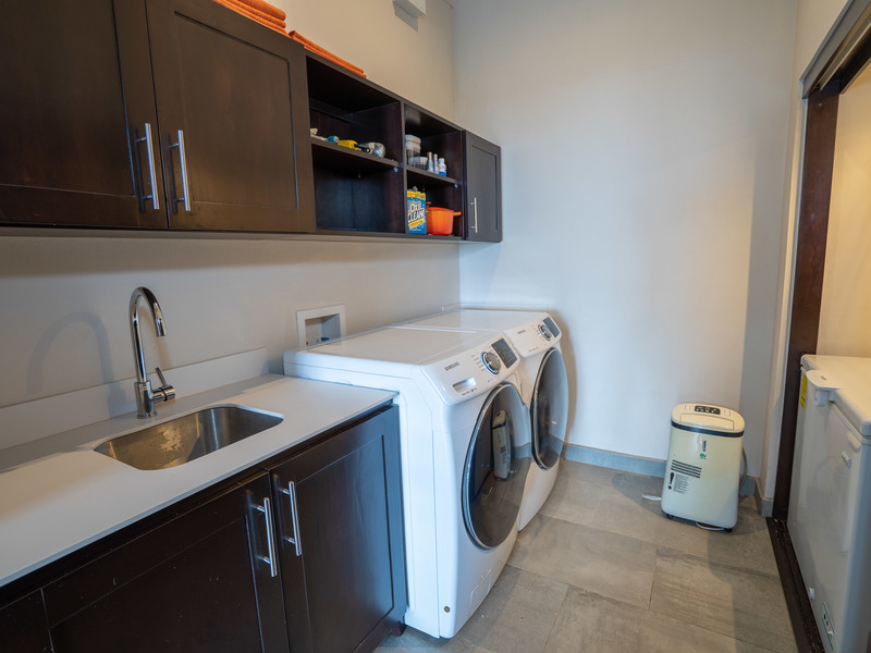 • Laundry room with Samsung 20 kg front load W/D, deep chest freezer and Pantry