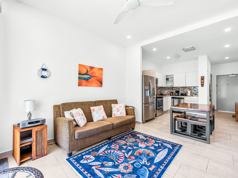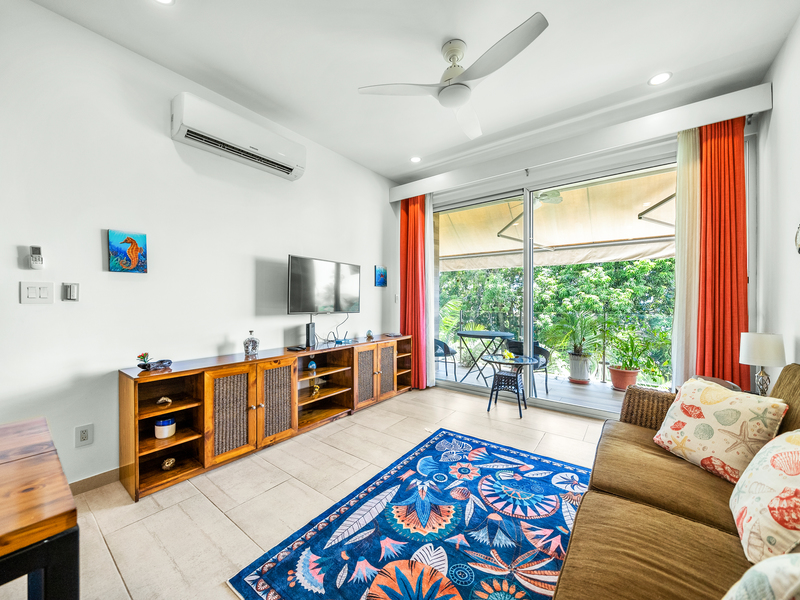 La unidad cuenta con un espacio de sala iluminado, ideal para relajarse después de un día de sol, además de un entorno privado que lo hace perfecto tanto para vivir a tiempo completo como para vacacionar. El condominio ofrece seguridad 24/7, una piscina muy privada y una espectacular terraza en la azotea, perfecta para disfrutar de los atardeceres.