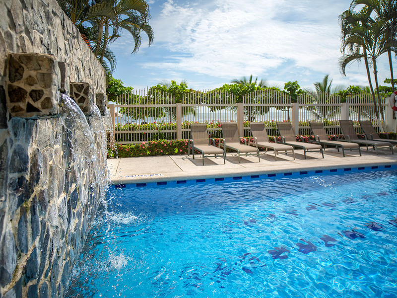 La Paloma Blanca is a beachfront condominium complex that offers luxury, tranquility and relaxation. Situated at the peaceful south end of Jaco Beach. There are four swimming pools on site, one extremely large free form lap pool with cascading waterfalls, as well as a kid\'s pool beside it. There are also two beachfront pools, which are smaller and more private. All pools include lounge chairs for your rest and relaxation. There is a small rancho area situated beside the main pool in which you can use with a fully equipped BBQ as well