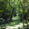 This property features four 540 square ft cottages with their own private terraces. Each cottage features a queen bed or a pair of twin beds, a wooden desk, private bath, and a kitchenette. They are also decorated with local artwork, custom wooden headboards, and lots of windows for natural lighting. Each cottage has its own terrace and access to the private hiking trails on-site. Each terrace includes two chairs, a paved path, and lots of green trees so each guest will feel secluded. In the middle of the cottages, there is a semi-circular firepit and pavilion, perfect for relaxing and conversing with new friends.